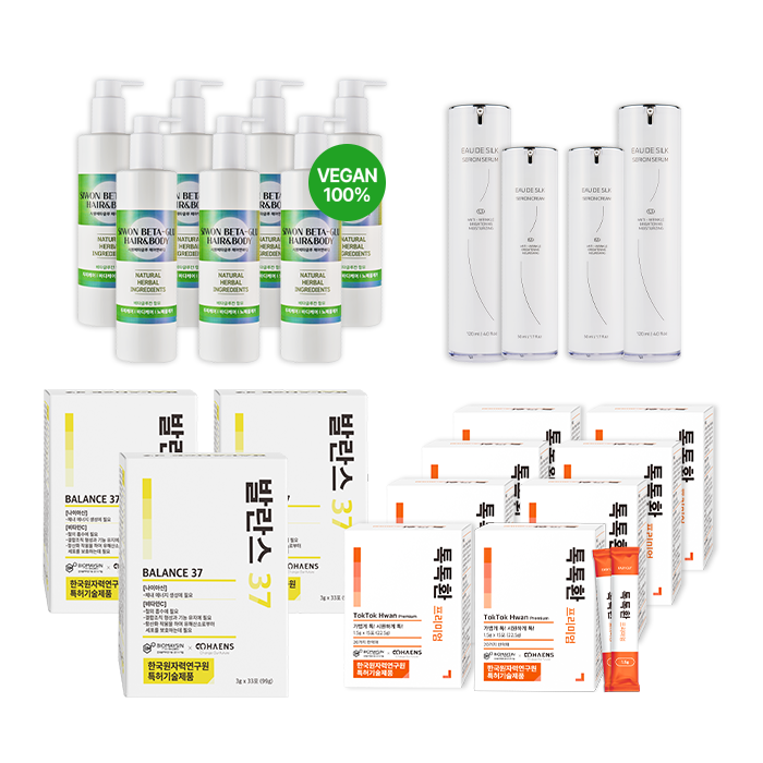 • 발란스37 3개 + 톡톡환 프리미엄 8개 + 오드실크 화장품 (2종) 2개 + 시원베타글루 7개