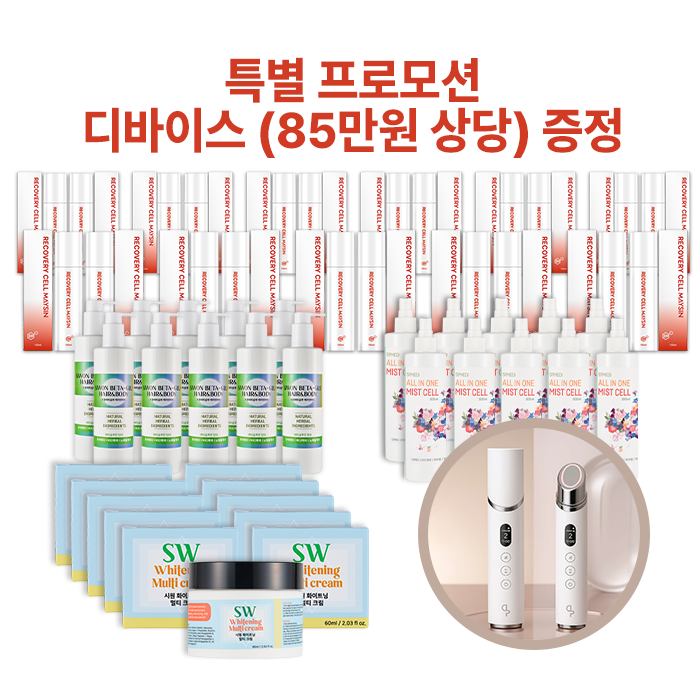 • "디바이스 증정" + 시원베타글루 10개+올인원미스트 10개+시원멀티크림 10개+RECOVERY CELL MAYSIN 150ML 22개